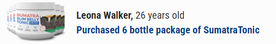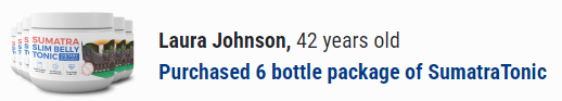 I like to categorize the results into three stages. First, you’ll feel much better overall, Increased energy, clearer thoughts, reduced inflammation, fewer aches and pains and better sleep. Think back a decade or two, that’s how you’ll feel again… Second, you’ll look better, your skin and face will look brighter and healthier, your fine lines and wrinkles will start to vanish… Finally, Sumatra Slim Belly Tonic will help you get rid of that excess body fat and keep it off. I’m positive this formula is the secret to a slim and sexy figure for everybody, your current situation doesn’t matter, whether you have ten, fifty, or more than a hundred pounds to lose is irrelevant.
