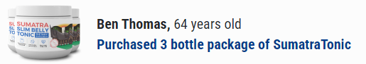 Sumatra Slim Belly Tonic contains ingredients that are proven to work, regardless of whether you’re twenty, forty, or eighty, and no matter your weight or background. So, yes. I’m 100% sure this will work for you, that’s why I’m letting you try this breakthrough formula completely risk-free. It’s simple, If, within 90 days, you are not totally thrilled with your results, let me know and you’ll receive every invested penny back, even if the bottle is empty…That’s why it’s a no-brainer, you simply have nothing to lose, except for unwanted body fat, doesn’t that sound fair? So, go ahead and experience these amazing results for yourself… Don’t delay… Click below to claim your package now