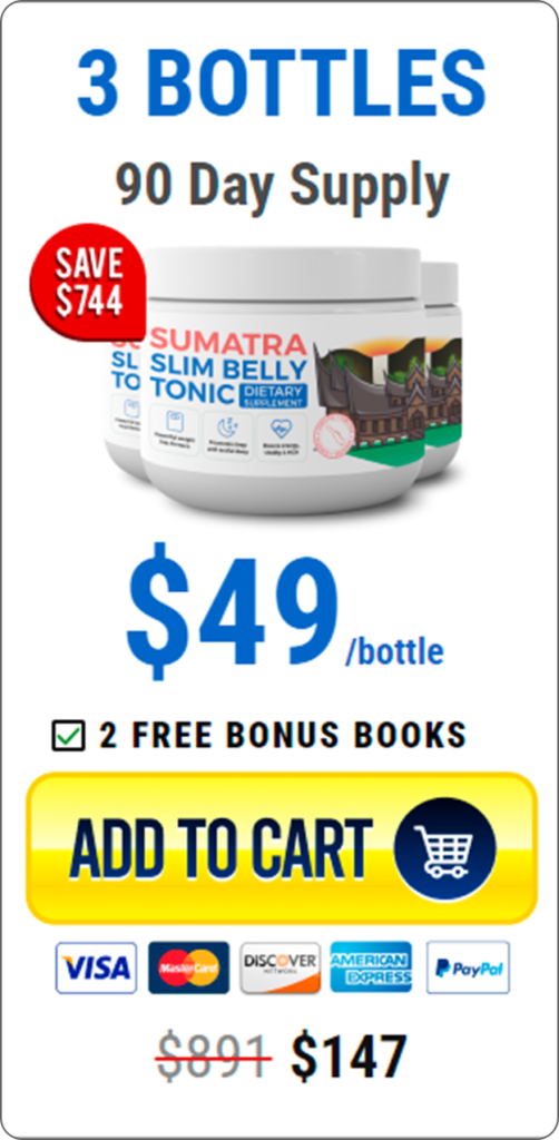Sumatra Slim Belly Tonic contains ingredients that are proven to work, regardless of whether you’re twenty, forty, or eighty, and no matter your weight or background. So, yes. I’m 100% sure this will work for you, that’s why I’m letting you try this breakthrough formula completely risk-free. It’s simple, If, within 90 days, you are not totally thrilled with your results, let me know and you’ll receive every invested penny back, even if the bottle is empty…That’s why it’s a no-brainer, you simply have nothing to lose, except for unwanted body fat, doesn’t that sound fair? So, go ahead and experience these amazing results for yourself… Don’t delay… Click below to claim your package now